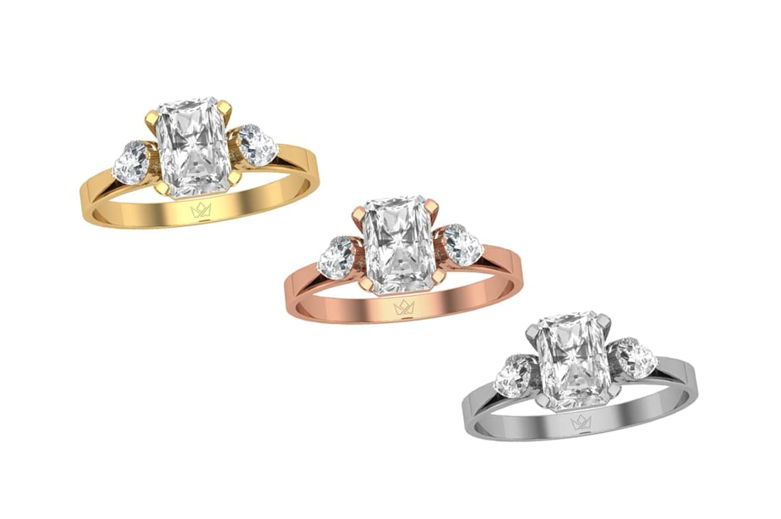 Choose your desired diamond shape and size to fit your budget, whether it’s classic platinum, elegant white gold, or warm rose gold. Next, select from our pre-set styles or start with a blank canvas and design every detail from scratch. From choosing the perfect setting and band to adding intricate details such as engravings or side stones, our tool gives you full control over every aspect of your ring.